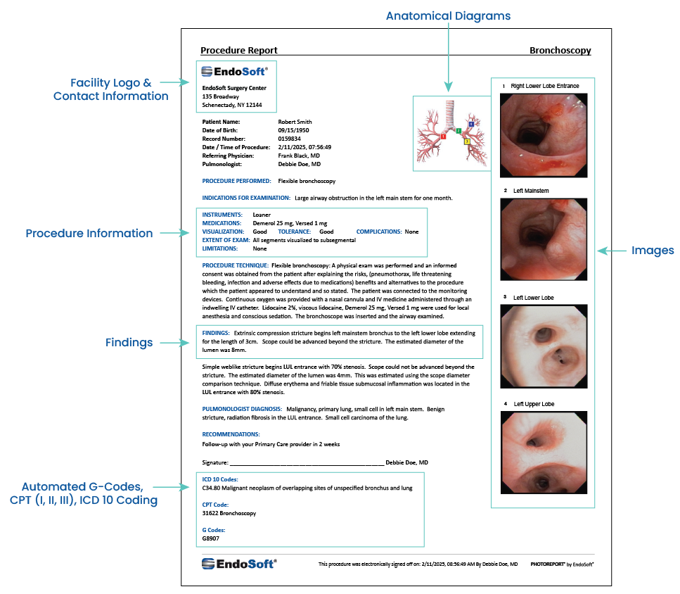 EndoSoft® Pulmonology offers streamlined procedure documentation and image capture capabilities