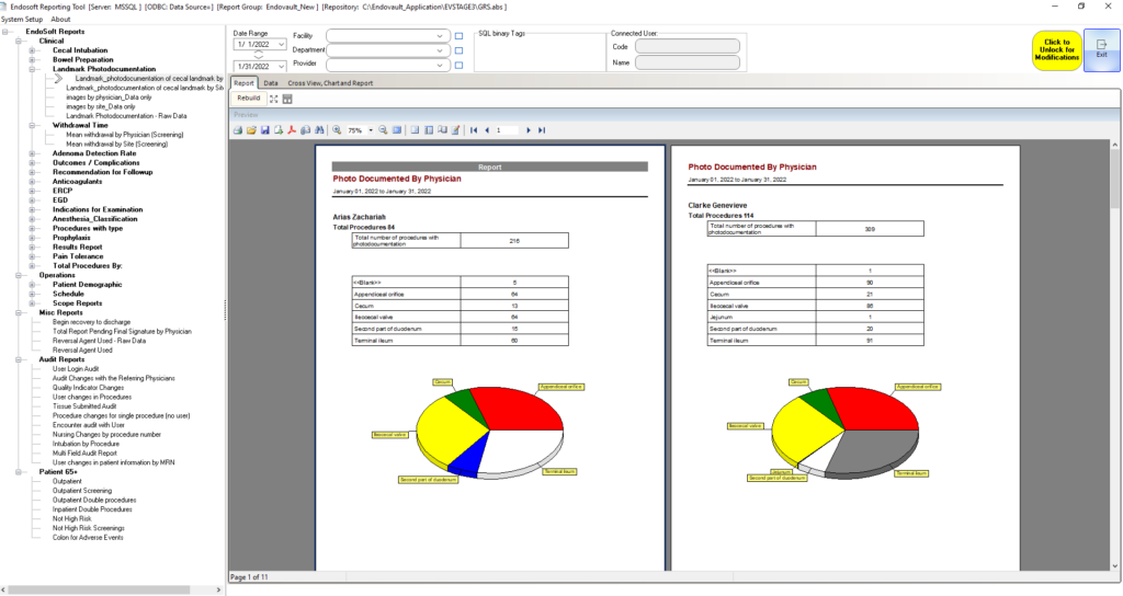 Searching for an endoscopy reporting system? The EndoVault® reporting tool provides a standardized reporting system to assist health care providers in adhering to quality measures. The tool allows providers to efficiently capture, track & submit quality reports to help meet regulatory requirements, prepare for audits, and analyze productivity.