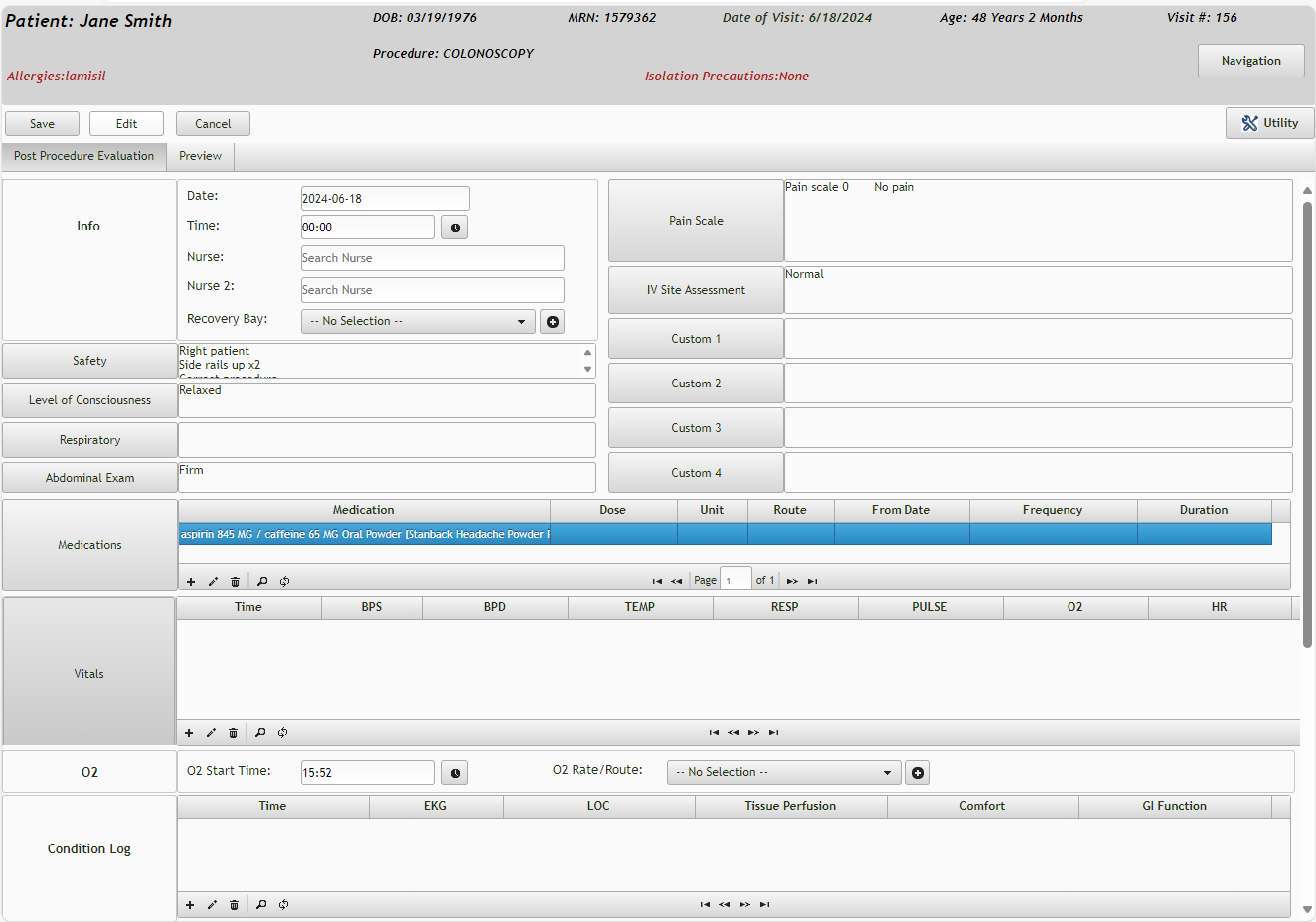 - Nursing History Pre-Procedure, Intra-Procedure, and Post-Procedure